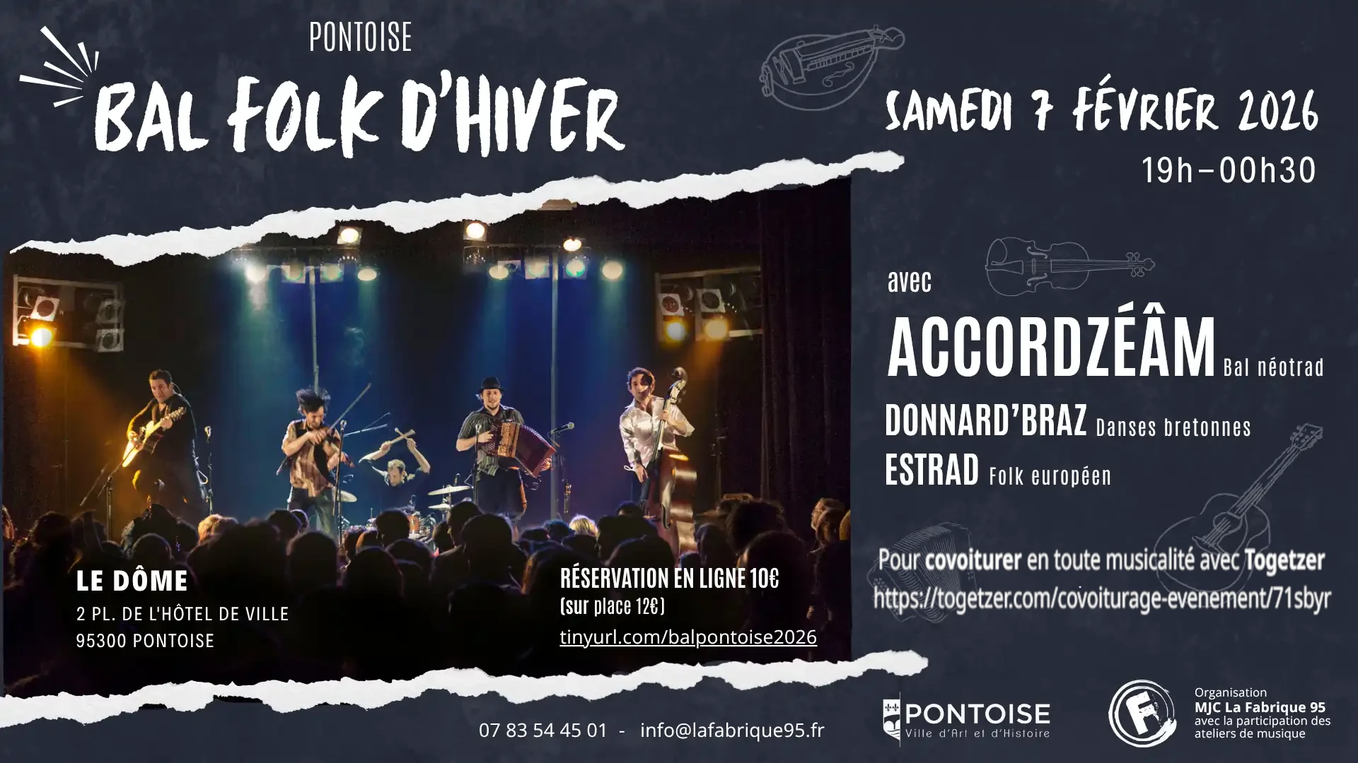 A l'automne ou au printemps, en partenariat avec la ville de Pontoise, les ateliers d'accordéons de La Fabrique 95 invitent musiciens et public à leur bal Folk,